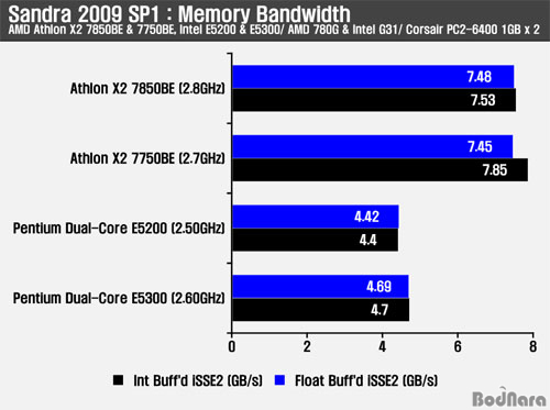 ¸Þ¸ð¸® ´ë¿ªÆøÀº Àüü ½Ã½ºÅÛ ¼º´É Çâ»ó¿¡ µµ¿òÀ» Áִµ¥ AMD´Â Athlon64 ½ÃÀýºÎÅÍ ¸Þ¸ð¸® ÄÁÆ®·Ñ·¯°¡ CPU¿¡ ³»ÀåµÇ°í Àֱ⠶§¹®¿¡ DDR3 ä³Î ¸Þ¸ð¸® ÄÁÆ®·Ñ·¯°¡ ³»ÀåµÈ ÄÚ¾î i7 ½Ã¸®Áî°¡ µîÀåÇϱâ Àü±îÁö ¸Þ¸ð¸® ´ë¿ªÆø È®º¸ Ãø¸é¿¡¼­´Â À¯¸®Çß´Ù. ÀÎÅÚ ÆæÆ¼¾ö µà¾óÄÚ¾î E5300/ E5200 CPUµéÀº ³ë½ººê¸´Áö¿¡ ¸Þ¸ð¸® ÄÁÆ®·Ñ·¯¸¦ ³»ÀåÇÏ¿© µ¥ÀÌÅÍ À̵¿ÀÇ Áö¿¬ ¹× ¼Õ½ÇÀÌ ¹ß»ýµÇ¾î ¸Þ¸ð¸® ´ë¿ªÆøµµ À̷лóÀÇ ´ë¿ªÆøº¸´Ù Å« ÆøÀ¸·Î ³·¾ÆÁö°Ô µÇ¸ç, AMD Athlon X2 7850BE/ 7750BE´Â CPU¿¡ ¸Þ¸ð¸® ÄÁÆ®·Ñ·¯°¡ ³»ÀåµÇ´Â ¸¸Å­ À̷лó ´ë¿ªÆø¿¡ º¸´Ù °¡±õ°Ô ÃøÁ¤µÈ´Ù.
