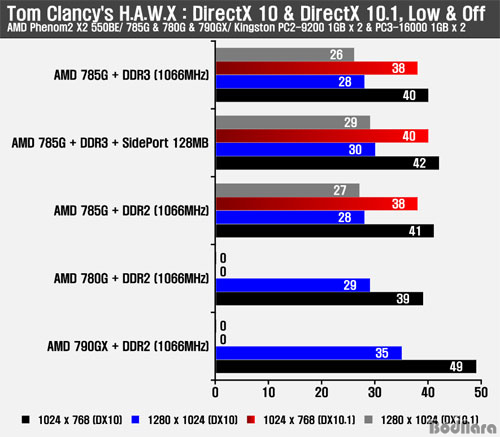 768 ÇØ»óµµ¿¡¼´Â DirectX 10°ú 10.1 ¸ðµÎ ¾à 40fps °¡±î¿î ÇÁ·¹ÀÓÀÌ ±â·ÏµÇ¾î 785G/ 780G/