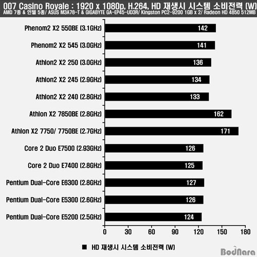 HD ¿µ»ó Å×½ºÆ®¸¦ ÁøÇàÇϱâ À§ÇØ 1080p H.264 ŸÀÌÆ²ÀÎ 007 Ä«Áö³ë ·Î¾âÀ» ÀÌ¿ëÇÏ¿´À¸¸ç, ¼ÒºñÀü·ÂÀº HD ¿µ»ó Å×½ºÆ® ÁøÇà ÁßÀÇ Àüü ½Ã½ºÅÛ ¼ÒºñÀü·ÂÀ» ÃøÁ¤Çß´Ù.
