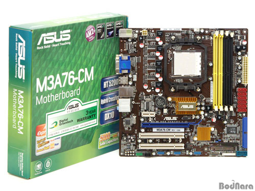AMD 760G Ĩ¼ÂÀÌ µé¾î°£ ¸ÞÀκ¸µå·Î´Â ASUS M3A76-CM Á¦Ç°ÀÌ »ç¿ëÇß´Ù. ÀÌ Á¦Ç°Àº ¾Õ¼­ ¼Ò°³ÇÑ 780V º¸µå M3A78-CM°ú °ÅÀÇ °°Àº ·¹À̾ƿôÀ» Çϰí ÀÖÁö¸¸, SB700ÀÌ µé¾î°£ M3A78-CM°ú ´Þ¸® SB710 Ĩ¼ÂÀ» »ç¿ëÇØ ACC ±â´ÉÀ» Áö¿øÇÏ´Â °ÍÀÌ Æ¯Â¡ÀÌ´Ù.