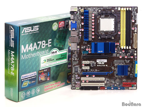 AMD 790GX ¸ÞÀκ¸µå·Î´Â ASUS M4A78-E°¡ µé¾î°¬´Ù. Micro-ATX ŸÀÔÀ¸·Î Ãâ½ÃµÇ´Â ´ëºÎºÐÀÇ ³»Àå ±×·¡ÇÈ º¸µå¿Í ´Þ¸® Å©·Î½ºÆÄÀ̾îX µà¾ó GPU ½Ã½ºÅÛ ±¸¼ºÀÌ °¡´ÉÇÑ Ä¨¼Â Ư¼º»ó 2°³ÀÇ PCI Express x16 ½½·ÔÀ» °¡Áø ATX ŸÀÔÀ¸·Î ¸¸µé¾îÁ³À¸¸ç, »ç¿ì½ººê¸´Áö·Î SB750 Ĩ¼ÂÀÌ µé¾î°¬´Ù. 8+1 Phase Àü¿øºÎ ±¸¼º¿¡ HDMI, DVI, D-SUB Ãâ·ÂºÎ, 128MB »çÀÌµå Æ÷Æ® ¸Þ¸ð¸®, ±×¸®°í ASUS EPU ±â´ÉÀÌ µé¾î°¬´Ù.