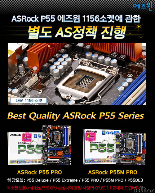 ASRock P55´Â ¹ÙÀÌ¿À½º 1014¿¡¼ ¹®Á¦°¡ ÇØ°á µÇ¾úÀ¸¸ç, º¸µå³ª¶ó°¡ ±â»ç¸¦