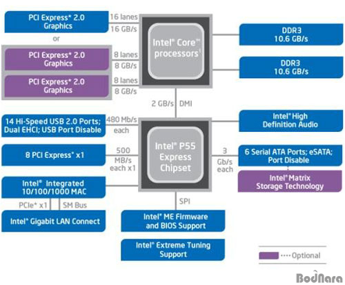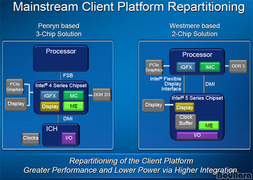 ±×·¯³ª H57/H55¿¡¼ CPU+GPU ¾ÆÅ°ÅØÃ³°¡ µµÀÔµÇ¸é¼ ±×·¡ÇÈ ¿¬»ê°ú DDR3 ¸Þ¸ð¸® ÄÁÆ®·Ñ·¯, ±×¸®°í PCI Express 2.0 ±×·¡ÇÈ ÀÎÅÍÆäÀ̽º±îÁö CPU ¾È¿¡ ÅëÇÕ½ÃŰ°í ³²Àº µð½ºÇ÷¹ÀÌ Ãâ·Â°ú ME ±â´É¸¸ ICH¿¡ ÅëÇÕ½ÃÄÑ PCH(Platform Controller Hub)¶ó´Â À̸§ÀÇ ½Ì±Û Ĩ¼ÂÀ¸·Î ¸¸µé¾ú´Ù.