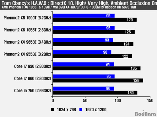 DX10/ 10.1À» Áö¿øÇÏ´Â HAWX °ÔÀÓÀº 4ÄÚ¾î ÀÌ»óÀÇ CPU¸¦ Áö¿øÇÏ´Â °ÍÀ¸·Î ¾Ë·ÁÁ® Àִµ¥ ÇÏÀÌÆÛ½º·¹µùÀÌ Ãß°¡µÈ ÀÎÅÚ °è¿ CPUµéÀÌ CPU ¿¬»ê ¼º´É¿¡ ¿µÇâÀ» ¹Þ´Â ÀúÇØ»óµµ¿¡¼ ³ôÀº ÇÁ·¹ÀÓÀ» Á¦°øÇß´Ù. ¹Ý¸é, ±×·¡ÇÈÄ«µåÀÇ ¼º´É¿¡ ¿µÇâÀ» ¹Þ´Â °íÇØ»óµµ¿¡¼´Â ´Ù¸¥ °ÔÀÓµéó·³ AMD¿Í ÀÎÅÚ °è¿ ¸ðµÎ Å« Â÷ÀÌ´Â ¾ø´Â °ÍÀ¸·Î ³ªÅ¸³µ´Ù.