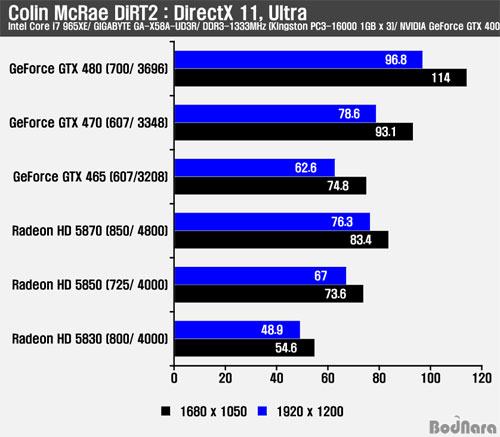 Äݸ° ¸Æ·¹ÀÌ ´õÆ®2 (Colin McRae DiRT2)´Â DirectX 11°ú Å×¼¿·¹À̼ÇÀ» Ȱ¿ëÇÏ´Â °ÔÀÓÀ¸·Î ¾Ë·ÁÁ® ÀÖ´Ù. DirectX 11À» Àû¿ëÇÑ ¼º´ÉÀº ¾Õ¼ »ìÆìº» º¥Ä¡¸¶Å©¿Í ¸¶Âù°¡Áö·Î Å×¼¿·¹ÀÌ¼Ç Ã³¸® ¼º´ÉÀÌ ¿ì¼öÇÑ ÁöÆ÷½º GTX 400 ½Ã¸®ÁîµéÀÌ À¯¸®ÇÏ°Ô ³ªÅ¸³µ´Ù.