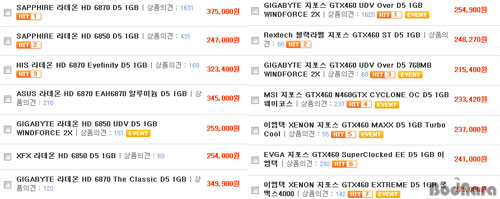 ÀÌ·¯ÇÑ °¡°Ý Â÷ÀÌ´Â ±âÁØ¿¡ µû¶ó ´Ù¸£±â´Â ÇÏÁö¸¸ ÃÖ´ë 19¸¸¿ø±îÁö Â÷À̸¦ º¸À̱⵵ Çϴµ¥, °¡°ÝÀûÀÎ ¹®Á¦´Â HD 6800 ½Ã¸®ÁîÀÇ ¼ö±Þ ¹®Á¦°¡ ÇØ°áµÈ ÈÄ¶óµµ Çѵ¿¾È °¡°ÝÀûÀÎ ¸éÀº GTX 460 ½Ã¸®Áî°¡ ¿ì¼¼ÇÒ °ÍÀ¸·Î ÆÇ´ÜµÇ¸ç, ¿À¹öŬ·° ¼öÁØ¿¡ µû¸¥ ´Ù¾çÇÑ °¡°Ý´ëÀÇ Á¦Ç°ÀÌ ½ÃÀå¿¡ ÆÇ¸ÅµÇ°í ÀÖ¾î º¸´Ù »ç¿ëÀÚ¿¡°Ô º¸´Ù ´Ù¾çÇÑ ¼±ÅñÇÀ» Á¦°øÇÑ´Ù.