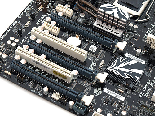 ECS P67H2-A ºí·¢ ÀͽºÆ®¸²Àº °í±ÞÇü ½Ã¸®Áî¿¡ ¾î¿ï¸®°Ô ¼·Î ´Ù¸¥ Á¦Á¶»çÀÇ GPU Áï, ÀÌÁ¾°£ÀÇ GPU¸¦ Á¶ÇÕÇÒ ¼ö ÀÖ´Â Lucid»çÀÇ Hydra Ĩ¼Â (LT24102, A1 ¸®ºñÀü)À» ÀåÂøÇϰí ÀÖ´Ù. Hydra Ĩ¼Â°ú P67À» Á¶ÇÕÇÏ¿© 2/ 3-Way ¼³Á¤À» Áö¿øÇϸç, PCIe x16 + x 16 ¶Ç´Â x16 + x8 + x8 Á¶ÇÕÀ» ±¸¼ºÇÒ ¼ö ÀÖ´Ù. Hydra Ĩ¼ÂÀº A-Mode¸¦ ÅëÇØ AMDÀÇ 2°³ÀÇ GPU Á¶ÇÕ, N-Mode¸¦ ÅëÇØ ¿£ºñµð¾Æ (NVIDIA) µà¾ó GPU Á¶ÇÕ, X-Mode¸¦ ÅëÇØ AMD¿Í ¿£ºñµð¾Æ GPU¸¦ Á¶ÇÕÇÒ ¼ö ÀÖÀ¸¸ç, PCIe x16 1¹ø ½½·Ô¿¡ ¸ð´ÏÅ͸¦ ¿¬°áÇÏ¸é µÈ´Ù.