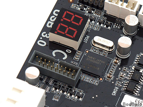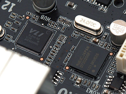 ¹éÆÐ³ÎÀÇ 4°³ÀÇ USB 3.0 Áö¿øÀ» À§ÇØ NEC D720200F1 ÄÁÆ®·Ñ·¯ Çϳª¿Í ºñ¾Æ (VIA)ÀÇ VLI VL810 USB 3.0 Hub°¡ Á¶ÇյȴÙ. NEC ÄÁÆ®·Ñ·¯´Â ÃÑ 2°³ÀÇ USB 3.0 Æ÷Æ®¸¦ Áö¿øÇϳª VLI VL810 USB 3.0 Hub¸¦ ÅëÇØ 4°³ÀÇ USB 3.0 Æ÷Æ®·Î È®ÀåÇÒ ¼ö ÀÖ°Ô ÇØÁÖ¸ç, NEC ÄÁÆ®·Ñ·¯º¸´Ù Á¶±Ý ´õ ³ôÀº °¡°ÝÀ» Çü¼ºÇÏ´Â °ÍÀ¸·Î ¾Ë·ÁÁ® ÀÖ´Ù.