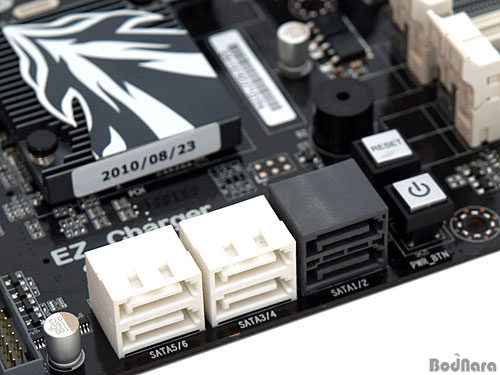 P67 Ĩ¼ÂÀº 6°³ÀÇ SATA Æ÷Æ®¸¦ Á¦°øÇϴµ¥ ÇϾá»ö 4Æ÷Æ®´Â SATA2 (3Gbps), °ËÁ¤»ö 2Æ÷Æ®´Â SATA3 (6Gbps)¸¦ Á¦°øÇÑ´Ù. Àü¿ø ¸®¼Â°ú ¿Â¿ÀÇÁ¸¦ ÁøÇàÇÒ ¼ö ÀÖ´Â Àü¿ø ¿Â¿ÀÇÁ ¹öư°ú ¸®¼Â ¹öưÀ» °¢°¢ Á¦°øÇÑ´Ù.