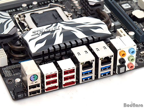 ¹éÆÐ³ÎÀº USB 2.0 6Æ÷Æ®, USB 3.0 (Ǫ¸¥»ö) 4Æ÷Æ®, eSATA3 (6Gbps) 2Æ÷Æ®¿Í µà¾ó ±â°¡ºñÆ® ÀÌ´õ³Ý Æ÷Æ®, CMOS Ŭ¸®¾î ¹öư, ¾Æ³¯·Î±× ¿Àµð¿À 5Æ÷Æ®¿Í Optical SPDIF Ãâ·Â Æ÷Æ®, PS2 Űº¸µå¿Í ¸¶¿ì½º Æ÷Æ® 1°³·Î ±¸¼ºµÈ´Ù.