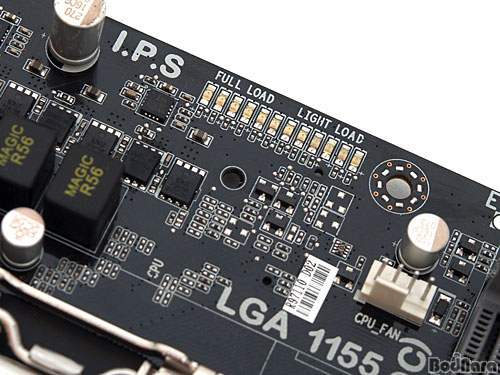 Àü¿øºÎ´Â CPU 12ÆäÀÌÁî¿Í ¸Þ¸ð¸®/ QPI¸¦ À§ÇÑ 1ÆäÀÌÁî·Î intersil ISL6366A PWM ÄÁÆ®·Ñ·¯¿Í ISL6611 ¸ð½ºÆê µå¶óÀ̹ö 6°³¿Í ÆäÀÌÁî ´ç 2°³ÀÇ ¸ð½ºÆêÀ» Á¶ÇÕÇÏ¿© ±¸¼ºÇÑ´Ù. »÷µðºê¸´Áö (Sandy Bridge) Áö¿øÀ» À§ÇÑ ÀÎÅÚ VRD12¸¦ ºñ·ÔÇÏ¿© VR11.1/ VR10/ VR11ÀÇ Àü¿øºÎ ±Ô°Ý°ú ȣȯµÈ´Ù. Àü¿øºÎ ¼ÒÄÏÀº ÀÏ¹Ý ¸ÞÀκ¸µå 3¹èÀÇ 15 ¸¶ÀÌÅ©·Î (u) °ñµå Á¢¼ÓºÎ¸¦ Á¦°øÇØ ¾ÈÁ¤¼º°ú Á¢¼ÓºÎ ½ÅÈ£ Àü¼Û È¿À²À» ³ô¿©ÁØ´Ù. Ä𸵠¼Ö·ç¼ÇÀº È÷Æ®ÆÄÀÌÇÁ°¡ Æ÷ÇÔµÈ Qooltech III ±â¼úÀÌ Àû¿ëµÇ¾î Àü¿øºÎ ¸ð½ºÆê°ú Hydra Ĩ¼ÂÀ» ÀÏü·Î Äð¸µÇÒ ¼ö ÀÖ´Ù.