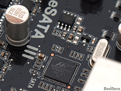 ¹éÆÐ³ÎÀ» ÅëÇØ Áö¿øµÇ´Â eSATA´Â SATA3 (6Gbps)¸¦ Áö¿øÇÏ´Â eSATA3 Æ÷Æ®·Î 2°³°¡ Á¦°øµÇ¸ç, Marvell 88SE9128 PCIe ÄÁÆ®·Ñ·¯°¡ »ç¿ëµÈ´Ù.