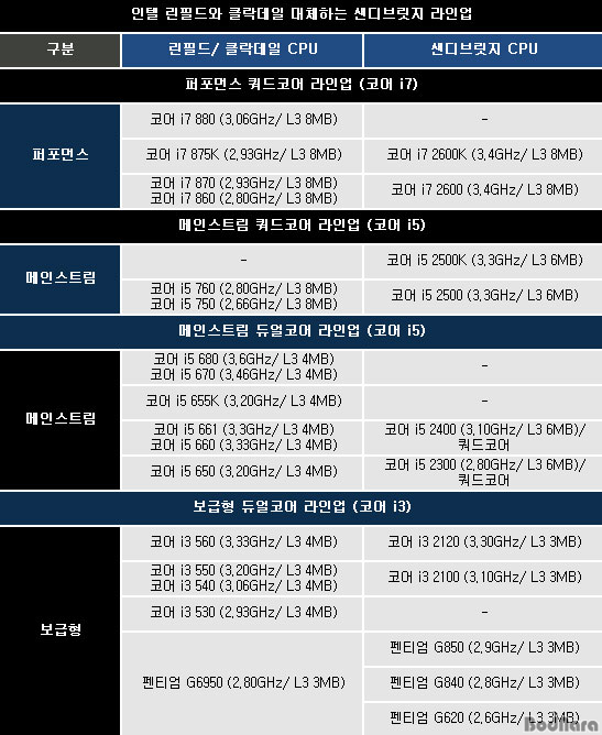 | ±¸ºÐ | Intel Core i5 2500/ 2500K | Intel Core i5 760 |