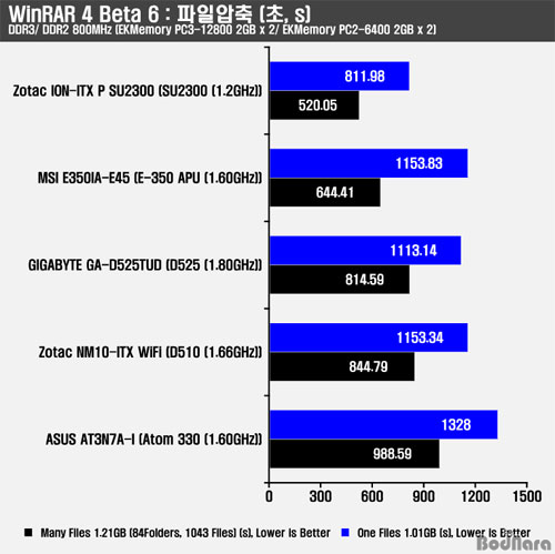 (1.66GHz)º¸´Ù ó¸® ½Ã°£ÀÌ ´Ã¾î³µÀ¸³ª ¸¹Àº ÆÄÀÏÀ» ¾ÐÃàÇÒ °æ¿ì¿¡´Â ¹Ý´ë·Î À̵éÀ» ¸ðµÎ ¾Õ¼°í ÀÖ´Ù.