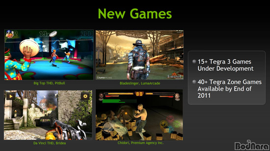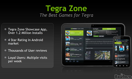 PC °ÔÀÓ ½ÃÀå¿¡¼ ÀÌ¹Ì TWIMTBP(The Way It's Mean to be Played)¸¦ ÁøÇàÇϰí ÀÖ´Â ¿£ºñµð¾Æ´Â ¸ð¹ÙÀÏ °ÔÀÓ ½ÃÀå¿¡¼µµ Å×±×¶ó Á¸(Tegra Zone)À» ÅëÇØ Å×±×¶ó¸¦ Áö¿øÇÏ´Â °ÔÀÓµéÀ» ¸ð¾Æ¼ ¼Ò°³Çϰí ÀÖ´Ù. ÇöÀç 15°³ ÀÌ»óÀÇ Å×±×¶ó 3 Áö¿ø °ÔÀÓµéÀÌ °³¹ß Áß¿¡ ÀÖÀ¸¸ç, ¿¬¸»±îÁö 40°³ ÀÌ»óÀÇ Å×±×¶ó Á¸ °ÔÀÓµéÀ» ÀÌ¿ë °¡´ÉÇÏ´Ù.