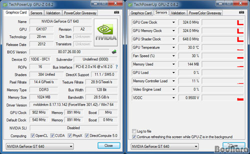 ÁöÆ÷½º GT 640Àº ÄÉÇ÷¯ (Kepler) ¾ÆÅ°ÅØÃ³¸¦ Àû¿ëÇØ Àü·Â È¿À² °³¼±ÀÌ ÀÌ·ç¾îÁ³°í ¾ÆÀ̵é½Ã Ŭ·° ½ºÀ§ÄªÀ» Áö¿øÇØ ¾ÆÀ̵é½Ã Àü·Â ¼Ò¸ð¸¦ ÁÙÀδÙ. GPU-Z 0.6.2¿¡¼ È®Àνà GPU ºÎ½ºÆ® (GPU Boost)´Â µ¿ÀÛÇÏÁö ¾ÊÀ¸¸ç, µ¿ÀÛ Å¬·°Àº 902MHz, ¸Þ¸ð¸® 1782 (891)MHz°¡ Àû¿ëµÇ¾ú´Ù.