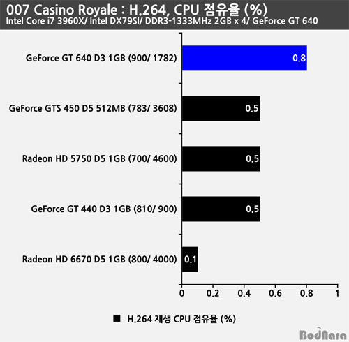 1080p H.264 ¿µ»ó Àç»ýÀ» À§ÇØ 007 Ä«Áö³ë ·Î¾â (Casino Royale) ºí·ç·¹ÀÌ Å¸ÀÌÆ²À» ÀÌ¿ëÇßÀ¸¸ç, ÇöÀç´Â Äõµå ÄÚ¾î CPU ÀÌ»óÀ̸é 1080p H.264 Àç»ý¿¡ CPU Á¡À¯À²Àº 50% À̳»·Î °¡´ÉÇϱ⠶§¹®¿¡ ´ÙÁßÀÛ¾÷¿¡´Â Å« ¹«¸®°¡ ¾ø´Ù. GPU¸¦ ÀÌ¿ëÇØ Àç»ýÇϸé À̸¶Àúµµ 10% ³»¿Ü·Î CPU Á¡À¯À²À» ³·Ãâ ¼ö ÀÖ¾î º¸´Ù ¿øÈ°ÇÑ ÀÛ¾÷ÀÌ °¡´ÉÇØÁø´Ù.