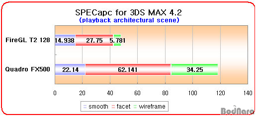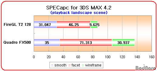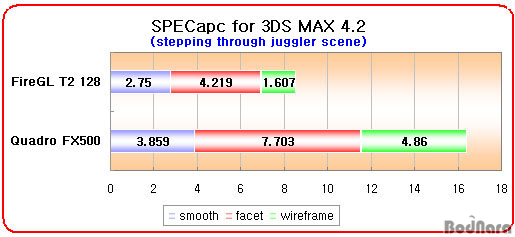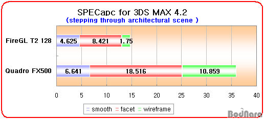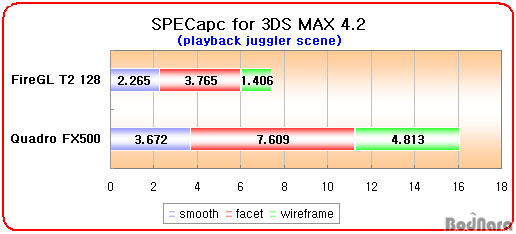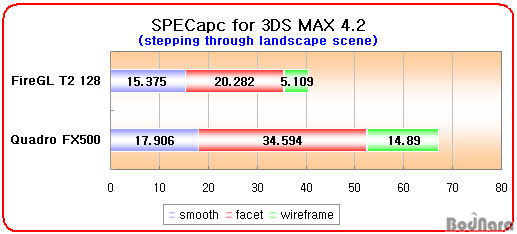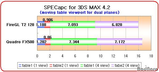 Ç׸ñ¿¡¼ ¸ðµÎ FireGL T2 128ÀÌ Quadro FX500º¸´Ù ºü¸¥ ¼º´ÉÀ» º¸¿©ÁÖ°í ÀÖ´Ù.