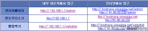 PC¿¡¼´Â http://192.168.1.1/webdisk ·Î, ÀÎÅͳݸÁÀ» ÅëÇØ ¿ÜºÎ¿¡¼ Á¢¼ÓÇÒ ¶§´Â ¸®¾óip/webdisk³ª