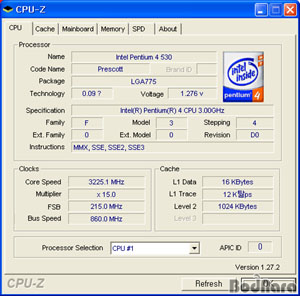 ¾Æ·¡´Â °¢ ¸ðµå½Ã ÀÛµ¿µÇ´Â Ŭ·°À» CPU-Z 1.27.2¹öÀüÀ¸·Î ÃøÁ¤ÇÑ °á°úÀ̸ç, Å×½ºÆ®¿¡ »ç¿ëµÈ CPU´Â Intel Pentium4 Prescott 530À¸·Î µ¿ÀÛ Å¬·°Àº 3.0GHzÀÌ´Ù.