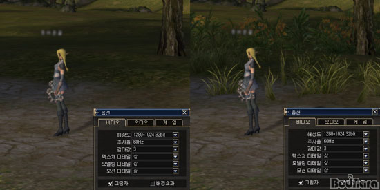 ¹è°æÈ¿°ú ¿É¼ÇÀ» Ȱ¼ºÈ­ ÇßÀ» ¶§´Â Çʵ忡 ÀÚ¶ó´Â Ç®°ú °°Àº ¼¼ºÎ ¹¦»ç Á¤µµ°¡ ´Þ¶óÁø´Ù. ±×¸²ÀÚ¿Í ¹è°æÈ¿°ú ¿É¼ÇÀº Ȱ¼ºÈ­ ½Ãų °æ¿ì ¸¶À» ³»ºÎ¿¡¼­´Â »ó´çÇÑ ÇÁ·¹ÀÓÀúÇϸ¦ °¡Á®¿À¹Ç·Î ·¹º§¾÷ÀÌ ÁÖ ¸ñÀûÀ̶ó¸é ´«ÀÇ Áñ°Å¿òÀº ¾î´À Á¤µµ Æ÷±âÇÏ´Â ÆíÀÌ ³´°Ú´Ù. ±×¸²ÀÚ¿Í ¹è°æÈ¿°ú´Â DirectX ¼¼´ëÀÇ ¿µÇâÀ» ¹ÞÁö ¾Ê°í Ç¥ÇöÀÌ °¡´ÉÇÏ´Ù.