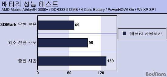Ç¥¿¡¼ º¸´Â °Í°ú °°ÀÌ ¿ÏÀü ¹æÀüµÈ »óÅ¿¡¼ ³ëÆ®ºÏÀ» ²ô°í Àü¿ø ¾î´ðÅ͸¦ ¿¬°áÇØ ¿ÏÀü ÃæÀüÇϱâ±îÁö ¾à 2½Ã°£ÀÌ ¼Ò¿äµÇ¾úÀ¸¸ç, 3DMark 2001SEÀÇ µ¥¸ð¸¦ ¹«ÇÑ ·çÇÁ½ÃŲ Å×½ºÆ® °á°ú ¾à 1½Ã°£ 9ºÐ Á¤µµ µ¿ÀÛÇÏ¿´´Ù. ¹Ý´ë·Î ºÎÆÃ ÈÄ ¾Æ¹« ÀÛ¾÷µµ ÇÏÁö ¾Ê°í ¹ÙÅÁȸ鸸 ¶ç¿öµÐ °æ¿ì ¾à 1½Ã°£ 35ºÐ Á¤µµ µ¿ÀÛÇÏ¿´´Ù.