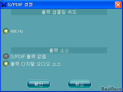 SPDIF ¼³Á¤ (µðÁöÅÐ)¿¡¼­´Â »ùÇøµ ¼Óµµ´Â 48KHz·Î ¼±ÅõǾú°í Ãâ·Â ¼Ò½º´Â SPDIF Ãâ·Â ¾øÀ½°ú Ãâ·Â µðÁöÅÐ ¿Àµð¿À ¼Ò½ºÀÇ 2°¡Áö¸¦ ¼±ÅÃÇÒ ¼ö ÀÖ´Ù.