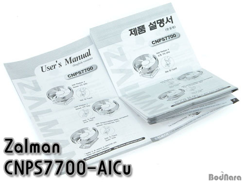 Zalman CNPS7700-AlCu´Â º¥Ä¡¸¶Å© ´ë»ó Áß¿¡ À¯ÀÏÇÑ Çѱ¹ Á¦Ç°À̱⠶§¹®¿¡ ¾ÕÀåÀº ¿µ¾î, µÞÀåÀº ÇÑ±Û ¸Å´º¾ó·Î ±¸¼ºµÇ¾î ÀϹÝÀεéÀÌ ³»¿ëÀ» ¾Ë¾Æº¼ ¼ö ÀÖ´Ù. »çÁøÀº ¾Æ´ÏÁö¸¸ ¼±¸íÇÏ°Ô º¸ÀÌ´Â ±×¸²À» »ç¿ëÇÏ¿© Èæ¹éÀÓ¿¡µµ ³»¿ëÀ» ÆÄ¾ÇÇϱ⿡´Â º°·Î ¾î·Á¿òÀÌ ¾ø´Ù. ±×·¯³ª Á¦Ç°ÀÇ ÀåÂø ¹æ¹ý ÀÚü°¡ º¹ÀâÇÏ¿© ¸Å´º¾óÀÇ ºÐ·®À̳ª ³»¿ëÀÌ ´Ã¾î³­ °ÍÀº ºÐ¸íÈ÷ °¨¾ÈÇØ¾ß ÇÒ °ÍÀÌ´Ù.