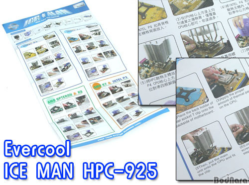Evercool ICE MAN HPC-925ÀÇ ¸Å´º¾óÀº ¼ÒÄϺ°·Î ¿©·¯ÄÆÀÇ ¼³Ä¡ ´Ü°è »çÁø°ú ÀÌ¿¡ ´ëÇÑ °£·«ÇÑ ¼³¸íÀÌ »çÁø ¾Æ·¡¿¡ ¾²¿©ÀÖ´Ù. ¾ÕÂÊÀº ¿µ¾î, µÚÂÊÀº Áß±¹¾î·Î µÇ¾îÀÖ¾î ÀÌ ¿ª½Ã ÇÑ±Û ¸Å´º¾óÀº Áö¿øµÇÁö ¾Ê´Â´Ù.