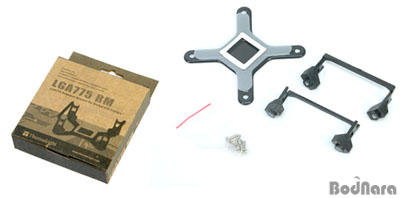 Thermalright XP-90C´Â ¾ö¹ÐÈ÷ ¸»ÇÏÀÚ¸é Äð·¯ ÀÚü´Â LGA775 ¹æ½ÄÀ» Áö¿øÇÏÁö ¾Ê´Â´Ù. À̸¦ LGA775 ¸ÞÀκ¸µå¿¡ »ç¿ëÇϱâ À§Çؼ­´Â Àü¿ë ¼³Ä¡ ºÎǰÀÎ LGA775 RMÀ» Ãß°¡·Î ±¸ÀÔÇØ¾ß Çϴµ¥ ÀÌ·Î ÀÎÇÑ ºñ¿ë ºÎ´ãÀÌ »ý±ä´Ù´Â ´ÜÁ¡ÀÌ ÀÖ´Ù. LGA775 RMÀº ¹éÇ÷¹ÀÌÆ®¿Í 2°³ÀÇ Å¬¸³ °íÁ¤¿ë ÇÃ¶ó½ºÆ½ ÁöÁö´ë·Î ±¸¼ºµÇ¾î ÀÖ´Ù. ¿¡¾î°¡ÀÌµå »ç¿ë ÄÉÀ̽º¿¡µµ ÀåÂø¿¡ ¹®Á¦°¡ ¾ø´Ù.