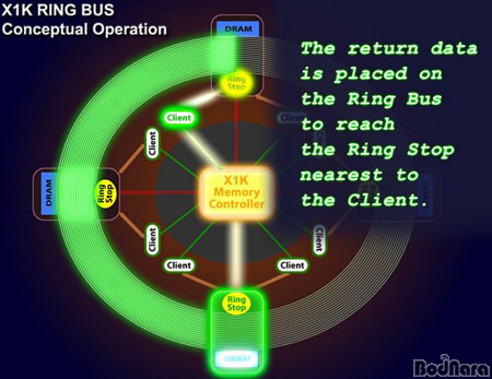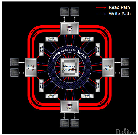 Ring Bus ¹æ½ÄÀÇ À̹ø ¸Þ¸ð¸® ÄÁÆ®·Ñ·¯´Â ±âÁ¸ Crossbar ¹æ½Ä°ú ¶Ç´Ù¸¥ Â÷À̸¦ °¡Áö°í ÀÖ´Ù. À̰ÍÀº µ¥ÀÌÅÍ Àü¼Û ¹æ½ÄÀ̳ª ¸Þ¸ð¸® ä³Î °¹¼öÀÇ Â÷À̰¡ ¾Æ´Ñ ¸Þ¸ð¸® ÄÁÆ®·Ñ·¯ ÀÚüÀÇ º¯È­Àε¥ ±âÁ¸±îÁö °íÁ¤ÀûÀÎ ±â´É¸¸À» Á¦°øÇß´ø ¸Þ¸ð¸® ÄÁÆ®·Ñ·¯°¡ Á»´õ Áö´ÉÇüÀ¸·Î º¯°æµÇ¾ú´Ù.