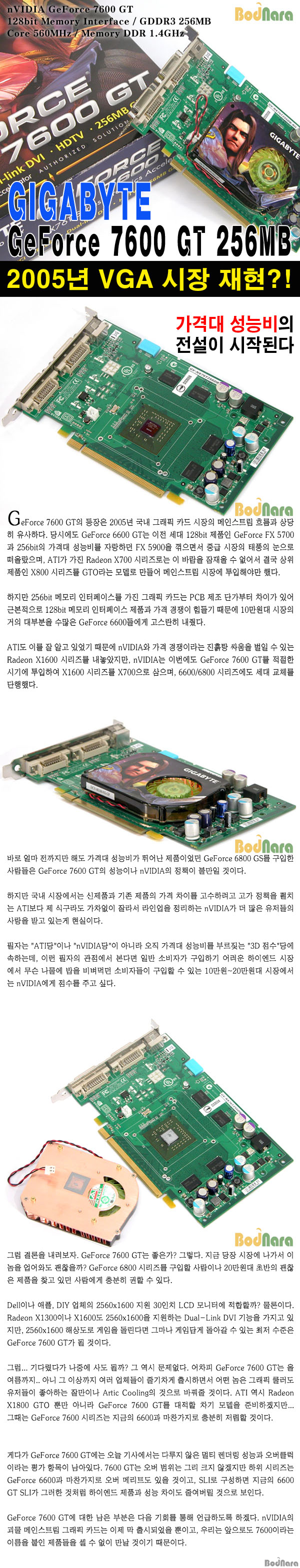 GIGABYTE GeForce 7600 GTÀÇ µ¿ÀÛ Å¬·°Àº 560MHz / DDR 1400MHz ÀÔ´Ï´Ù. elvinpark´ÔÀÌ ÁöÀûÇØÁֽЏ®ºä ³»¿ë¿¡ ¿À±â°¡ À־ ÇØ´ç ³»¿ëÀ» ¼öÁ¤ÇÏ¿´½À´Ï´Ù.