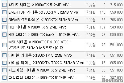 X1900XTX 512MB ViVo·Î 549,000¿øÀÌ´Ù. ¿©±â¿¡ Á÷Á¢ ±¸ÀÔÇÒ ¼ö ÀÖ´Â °í¼º´É VGA Ä𷯸¦ Á¶ÇÕÇÏ¿© ¾î¶²