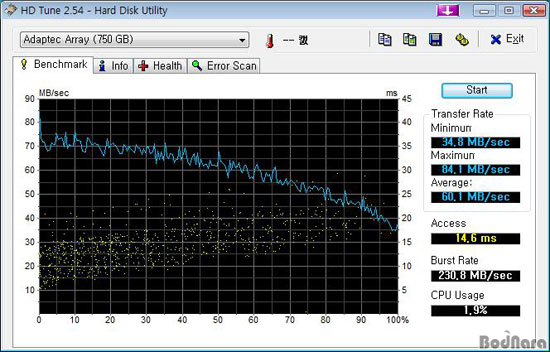 Àü¼Û·üÀÌ ³ô¾Æ ¾ÈÁ¤¼º »Ó¸¸ ¾Æ´Ï¶ó ¾î´À Á¤µµÀÇ ¼º´É Çâ»óµµ º¸¿©ÁÖ°í ÀÖ¾ú´Ù. (RAID 1x2 ¸ðµå ¼º´É Çâ»óÀº Adaptec