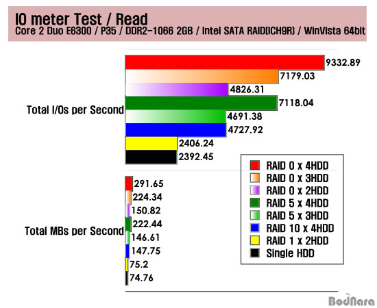 ±¸¼ºÀº 4°³ÀÇ ÇϵåÀÏ ¶§ RAID 0x3, ±×¸®°í 3°³·Î ±¸¼ºÇßÀ» ¶§´Â RAID 0x2ÀÇ ¼º´É°ú °ÅÀÇ °°¾Æ RAID 0¿¡¼ 1°³¾¿ÀÇ Çϵ带 »« °Í°ú ºñ½ÁÇÏ°Ô ³ª¿Ô´Ù. ½ºÆ®¶óÀÌÇΰú ¹Ì·¯¸µÀ» ¼¯Àº RAID 10´Â RAID 0x2º¸´Ù´Â ³ªÀº ¼º´ÉÀ» º¸¿´°í, Çϵå 2°³¸¦ ¹Ì·¯¸µÀ¸·Î