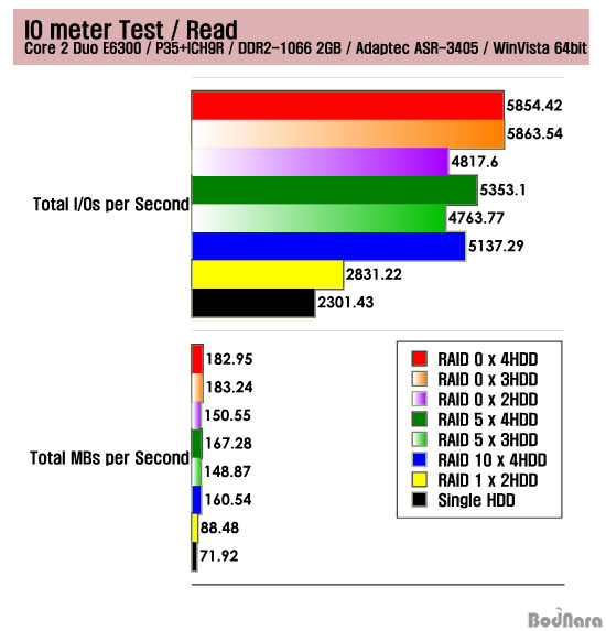 Ĩ¼ÂÀ» ÀÌ¿ëÇØ¼ °°Àº RAID ±¸¼ºÀ» °¡Áö°í IO Meter Å×½ºÆ®¸¦ ´Ù½Ã µ¹·Áº» °á°ú, Adaptec ASR-3405 RAID ÄÁÆ®·Ñ·¯¿¡¼´Â