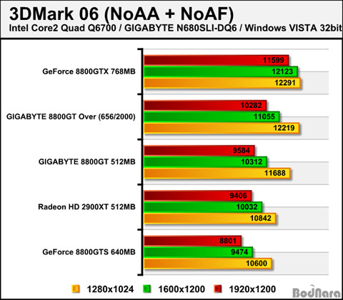 ¿À¹öŬ·°µÈ ±â°¡¹ÙÀÌÆ® 8800GT´Â ±âº» Ŭ·°º¸´Ù 5~10%ÀÇ ¼º´É Çâ»óÀ» º¸¿© GeForce 8800GTX¿¡ °ÅÀÇ ±ÙÁ¢ÇÏ´Â ¸ð½ÀÀ» º¸¿©ÁÖ°í ÀÖ´Ù. ¹°·Ð °íÇØ»óµµ¿¡¼­´Â ¼º´ÉÂ÷°¡ Å« ÆíÀÌÁö¸¸ ÇöÀç µÎ Á¦Ç°°£ÀÇ °¡°Ý´ë¸¦ »ý°¢ÇÑ´Ù¸é ¿À¹öŬ·°À¸·Î ÀÎÇØ ¾òÀ» ¼ö ÀÖ´Â ÀÌÁ¡Àº ¸¸Á·½º·´´Ù°í ÇÒ ¼ö ÀÖÀ» °ÍÀÌ´Ù.