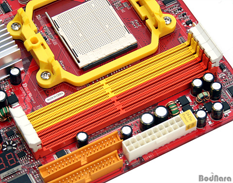 ¸¶ÀÌÅ©·ÎATX ±Ô°ÝÀÓ¿¡µµ ºÒ±¸Çϰí ATX¿Í µ¿ÀÏÇÑ 4°³ÀÇ ¸Þ¸ð¸® ½½·ÔÀ» °®Ãß°í ÀÖ¾î À̸¦ ÅëÇØ ÃÖ´ë 8GB¿ë·®À»ÀÇ DDR2 ¸Þ¸ð¸®¸¦ ÀåÂøÇÒ ¼ö ÀÖ´Ù. ÃÖ±Ùó·³ DDR2 ¸Þ¸ð¸®ÀÇ °¡°ÝÀÌ Æø¶ôÇÑ »óȲ¿¡¼­´Â ³Ë³ËÇÑ °³¼öÀÇ ¸Þ¸ð¸® ½½·ÔÀÇ Á¦°øÀº ´Ù¾çÇÑ Á¶ÇÕÀÌ °¡´ÉÇϱ⿡ ±× Ȱ¿ë¼ºÀÌ ³ô´Ù°í ÇÒ ¼ö ÀÖ´Ù.