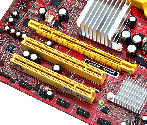 È®Àå ½½·ÔÀº ¸ÞÀκ¸µå³»¿¡ ±×·¡ÇÈ, »ç¿îµå, ·£ ±â´ÉÀÌ ¸ðµÎ ³»ÀåµÇ¾î Àֱ⠶§¹®¿¡ PCI-Express 2.0 x16 ½½·Ô 1°³¿Í 2°³ÀÇ PCI ½½·ÔÀÇ ´ÜÃÍÇÑ ±¸¼ºÀ» º¸¿©ÁÖ°í ÀÖ´Ù. ´Ù¸¸ ¿ÜÀå ±×·¡ÇÈ Ä«µå ÀåÂø½Ã¿¡ »ç¿ëµÇ´Â PCI-Express x16½½·ÔÀº PCIe 2.0 ±Ô°ÝÀ» ¸¸Á·Çϰí ÀÖÀ¸¸ç ¿©±â¿¡ HD 2400, HD 3400 ½Ã¸®Á ÀåÂøÇÒ °æ¿ì ³»Àå ±×·¡ÇȰú ÇÏÀ̺긮µå Å©·Î½ºÆÄÀÌ¾î ±¸¼ºÀ» Áö¿øÇÏ°Ô µÈ´Ù.
