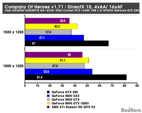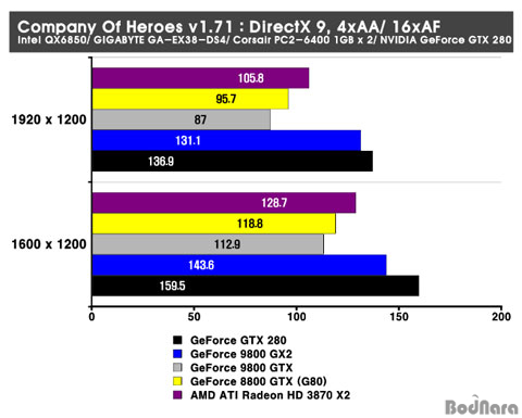 Å×½ºÆ®´Â COHÀÇ °á°úó·³ GeForce GTX 280ÀÌ µà¾ó GPU ±¸¼ºÀ¸·Î ³ôÀº ¼º´ÉÀ» º¸¿´´ø GeForce 9800
