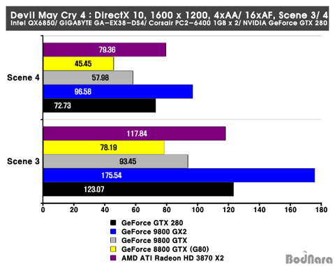 Å×½ºÆ® °á°úÀÌ´Ù. Å×½ºÆ® °á°ú °æÀï»çÀÇ µà¾ó GPUÀÎ HD 3870 X2¸¦ Scene4¸¦ Á¦¿ÜÇÏ°í ³ª¸ÓÁö 3°³ÀÇ