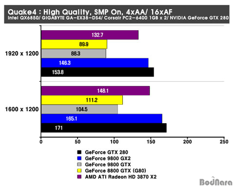 ¸¶Áö¸·À¸·Î Quake4¿¡ 4xAA/ 16xAF¸¦ Àû¿ëÇÏ¿´À» ¶§ÀÇ ¼º´ÉÀ» È®ÀÎÇØ º¸¾Ò´Ù. À̹ø