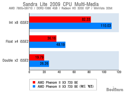 Sandra Lite 2009¿¡¼­ CPU ¿¬»ê ¹× ¸ÖƼ¹Ìµð¾î ¼º´ÉÀ» ºñ±³ÇÑ °á°ú Æ®¸®Çà Äھ¼­ Äõµå ÄÚ¾î·Î ¹Ù²î¸é¼­ ÄÚ¾î ¼ýÀÚ ¹× ij½Ã Áõ°¡¿¡ µû¸¥ ¼º´É Çâ»óÀÌ ÀÖ´Â °ÍÀ» È®ÀÎÇÒ ¼ö ÀÖ´Ù.