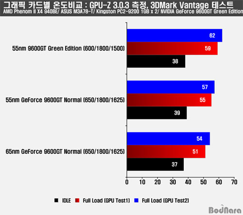 9600GT, ÀÏ¹Ý ¹öÀü°ú ±×¸°¿¡µð¼ÇÀÇ ¿Âµµ¿Í ¼ÒºñÀü·Âºñ±³