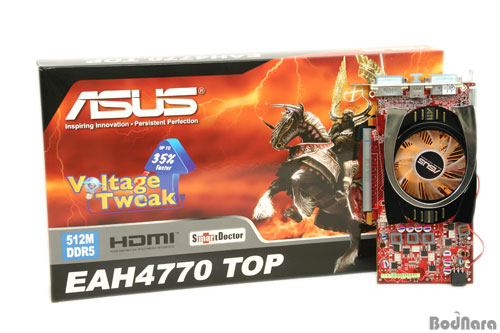 ASUS EAH4770 TOP´Â ¾Õ¼­ ¼Ò°³ÇÑ µÎ Á¦Ç°µé°ú ´Þ¸® GPU¿Í ¸Þ¸ð¸®ÀÇ Å¬·°ÀÌ °¢°¢ 800MHz, 3400(850)MHz·Î ¿À¹öŬ·°µÈ Á¦Ç°À¸·Î, ASUS°¡ Áö³­ 4890¿¡¼­ óÀ½ ¼Ò°³ÇÑVoltage Tweak ±â´ÉÀÌ Á¦°øµÇ¾î GPUÀü¾ÐÀΰ¡·Î ´õ¿í ³ôÀº GPU ¿À¹öŬ·°±â´ÉÀ» Á¦°øÇÏ´Â °ÍÀÌ Æ¯Â¡ÀÌ´Ù.
