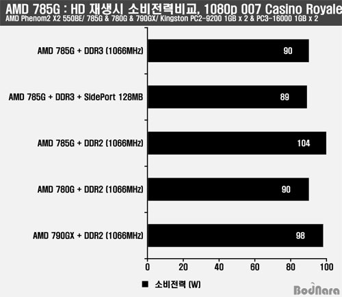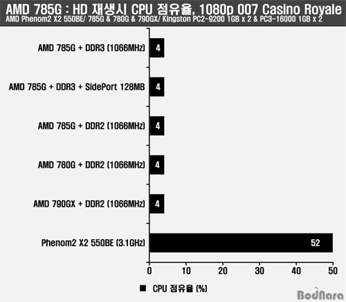 X2 550BE´Â 52%ÀÇ Á¡À¯À²À» º¸¿© UVD/ UVD2 °¡¼ÓÀÌ ÈξÀ À¯¸®Çß´Ù.  1080p HD ¿µ»ó Àç»ý½Ã ¼ÒºñÀü·ÂÀº Àüü ½Ã½ºÅÛÀÇ ¼ÒºñÀü·ÂÀ¸·Î 785G +