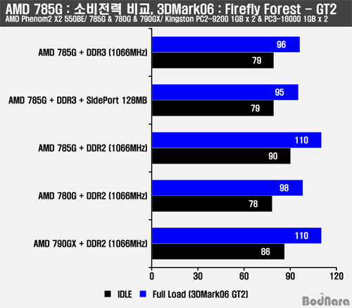 785G¿Í DDR2 Á¶ÇÕÀº 790GX DDR2 Á¶ÇÕ°ú °°Àº ¼ÒºñÀü·ÂÀ» ³ªÅ¸³Â´Ù. IDLE ¼ÒºñÀü·ÂÀº 790GXº¸´Ù