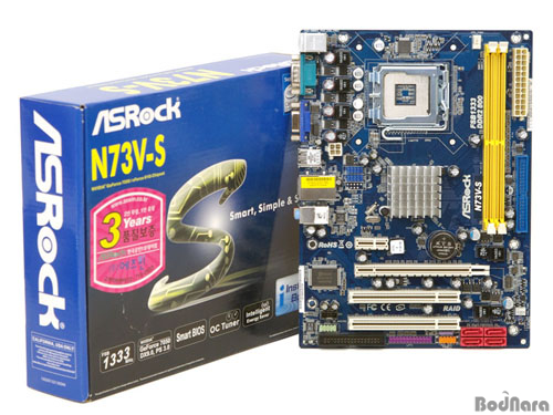 ÀÎÅÚ LGA775¿ë ¿£ºñµð¾Æ ÁöÆ÷½º 7050 + nF610i ¸ÞÀκ¸µå·Î´Â ASRock N73V-S Á¦Ç°À» »ç¿ëÇß´Ù. ÁöÆ÷½º 7 ½Ã¸®Áî°¡ Àú°¡/º¸±ÞÇü ³»Àå ±×·¡ÇÈ º¸µå·Î ÀÚ¸®Àâ¾Ò±â ¶§¹®¿¡ N37V-Sµµ ³»Àå ±×·¡ÇÈ Ãâ·Â ´ÜÀÚ´Â D-SUB Æ÷Æ® Çϳª¸¸ °®Ãè´Ù. ¸Þ¸ð¸® ½½·ÔÀº 2°³¸¦ Á¦°øÇϴµ¥, Ĩ¼Â ½ºÆå»óÀ¸·Î´Â ½Ì±Û ä³Î DDR2-667 ¸Þ¸ð¸®¸¸ Áö¿øÇÒ ¼ö ÀÖÁö¸¸ ½ÇÁ¦·Î Ãâ½ÃµÇ´Â ¸ÞÀκ¸µå´Â DDR2-800 ¸Þ¸ð¸® ±¸¼ºµµ ´ëºÎºÐ ¹ÙÀÌ¿À½º¸¦ ÅëÇØ »ç¿ëÇϵµ·Ï Áö¿øÇÑ´Ù.
