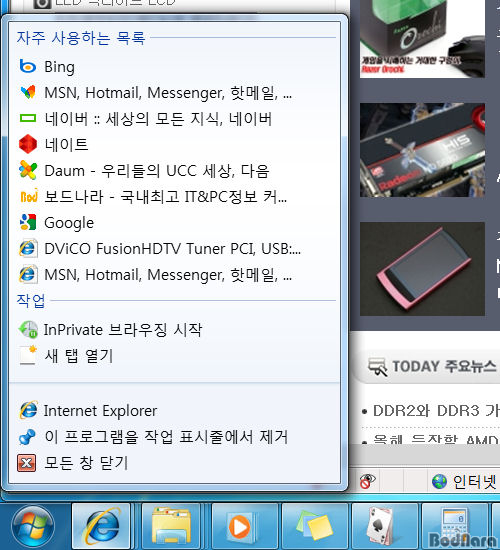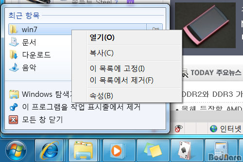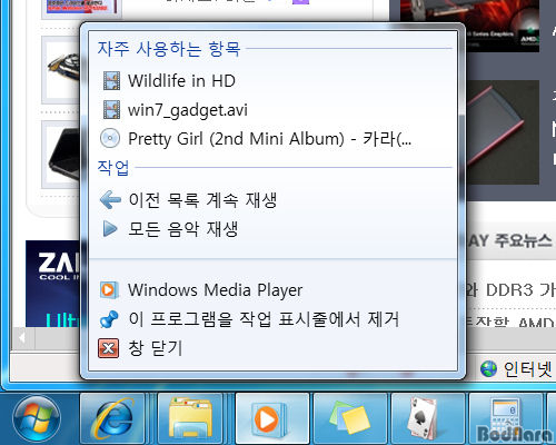 ÀÚÁÖ »ç¿ëÇÏ´Â ¸ñ·Ï/±â´ÉÀ» º¸¿©ÁÖ´Â Á¡ÇÁ ¸ñ·Ï(Jump List)