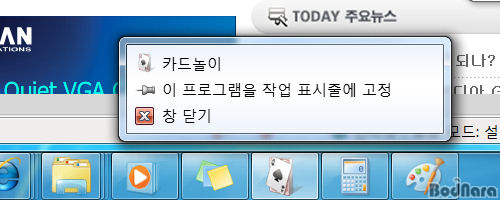¿ì¼± °¢ ÇÁ·Î±×·¥º°·Î ¸¶¿ì½º ¿ìÃø ¹öưÀ» ¼±ÅÃÇßÀ» ¶§ ³ªÅ¸³ª´Â ¸Ç ¸¶Áö¸· 3°¡Áö ¸Þ´º(»õ ÇÁ·Î±×·¥ ½ÇÇà, ÀÛ¾÷ Ç¥½ÃÁÙ¿¡ °íÁ¤ ¶Ç´Â Á¦°Å, ¸ðµç ⠴ݱâ)´Â µ¿ÀÏÇϰí, ÇÁ·Î±×·¥¿¡ µû¶ó º°µµÀÇ ÆÄÀÏÀ» ºÒ·¯¿À´Â ÇÁ·Î±×·¥Àº ÃÖ±Ù ºÒ·¯¿À°Å³ª ÀÚÁÖ »ç¿ëÇÏ´Â ÆÄÀÏÀ̳ª Ç׸ñ, ¸ñ·Ï µîÀ» Ç¥½ÃÇØÁØ´Ù.